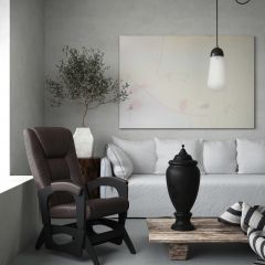 Для комфортного отдыха имеет маятниковый механизм , который выполняет классическую функцию покачивания, при этом она не проминает напольное покрытие. Кресло обтянуто мебельной тканью или искусственной кожей, каркас-дерево, боковины выполнены в виде криволинейных деталей, образующих ножки-опоры, материал боковины фанера. На боковинах имеются мягкие подлокотники.