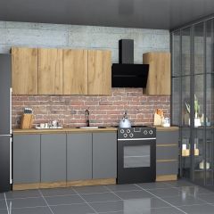 Кухня Хилтон 2.0 м (Дуб Крафт Золотой/Графит/Дуб Вотан)