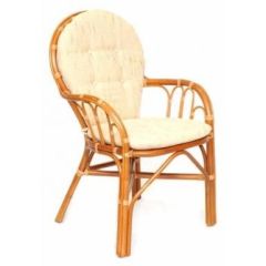 Стул из натурального ротанга с большой съемной подушкой и удобной высокой спинкой.