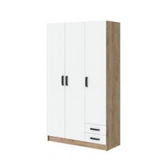 Функциональный трехстворчатый шкаф с оригинальным дизайном. Состоит из трех отделений: два со штангами для одежды и одно отделение с полками. Средняя створка выполнена с зеркалом.