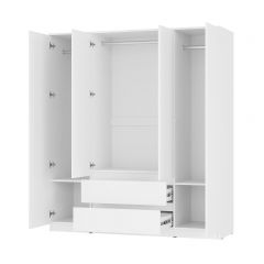 Простой и вместительный четырехстворчатый шкаф оснащен двумя вместительными выдвижными ящиками, в которых удобно хранить обувь и постельное белье.